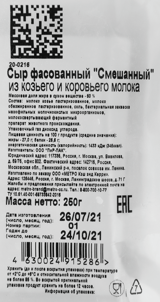 Metro Chef Сыр из смешанного молока 50%, 250г БЗМЖ. Metro Chef сыр из смешанного молока 50%, 250г БЗМЖ - это высококачественный сыр, который производится из смешанного молока. Сыр имеет высокий содержание молочных жиров и прочную текстуру.