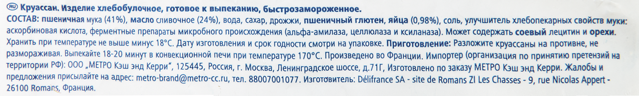 METRO Chef Круассаны замороженные (60г x 20шт), 1.2кг – знаменитая выпечка искусных французских кулинаров. Можно считать эту ароматную булочку символом доброго европейского утра. Продукт обладает выразительным вкусом, воздушной консистенцией. Расслаиваясь на тончайшие пласты, тесто буквально тает во рту. Это поистине королевское лакомство идеально подойдет к чашечке черного кофе или ароматного, густого шоколада. Ни один французский завтрак не обходится без этой комбинации вкусов и ароматов. В сочетании с любым напитком круассан подарит вам истинное гастрономическое удовольствие. Продукт изготовлен из качественного сырья, упаковывается в герметичный пакет, надежно сохраняющий свежесть, вкус и аромат круассана.