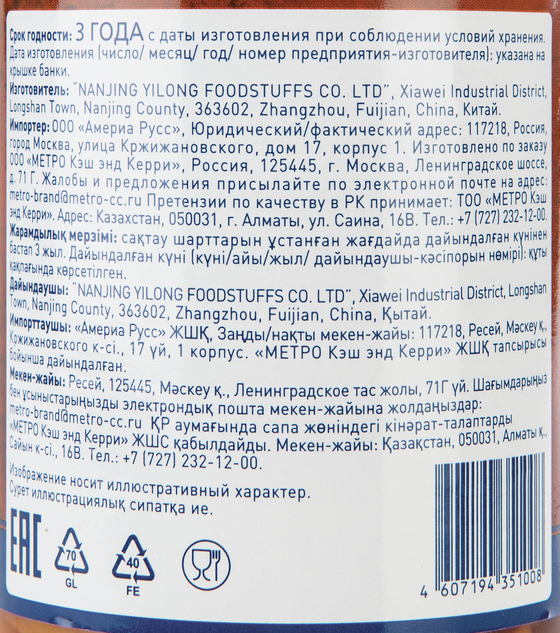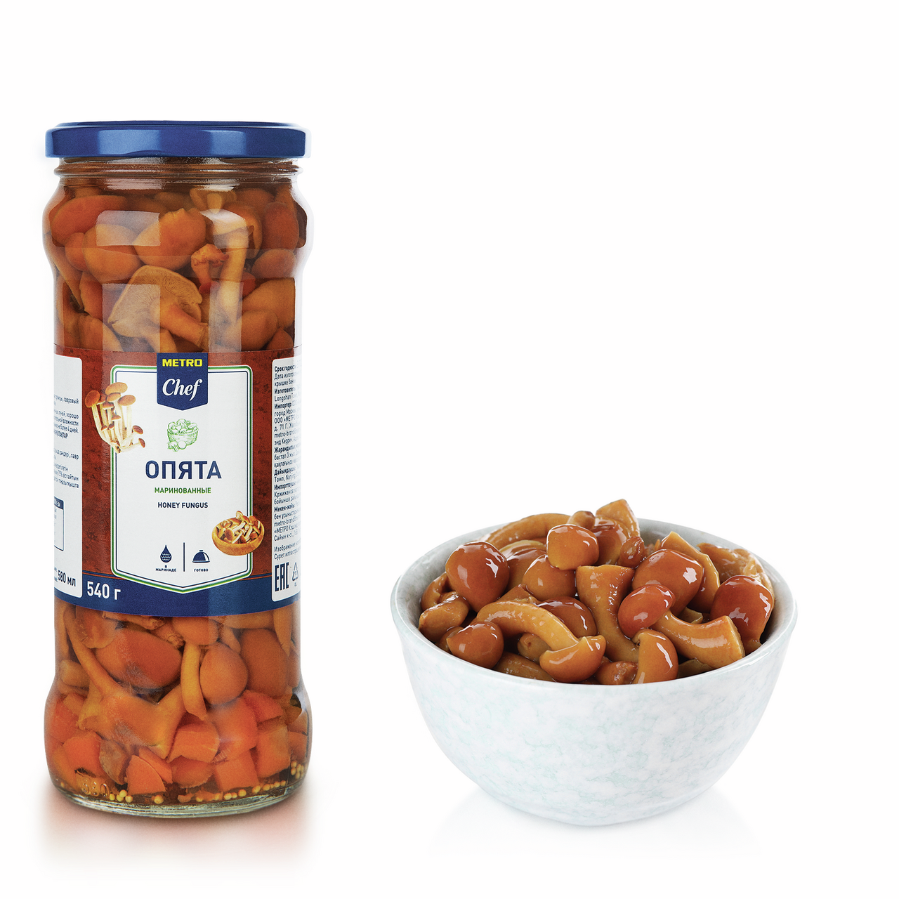 Грибы Metro Chef Опята маринованные – желанное блюдо на повседневном и праздничном застолье. Продукт отличается изысканным вкусом и ароматом, поэтому заслужил особую популярность среди покупателей. Грузди можно подать как самостоятельное блюдо, дополнив его ароматным маслом и белым луком, или же добавить их в салаты и закуски.
