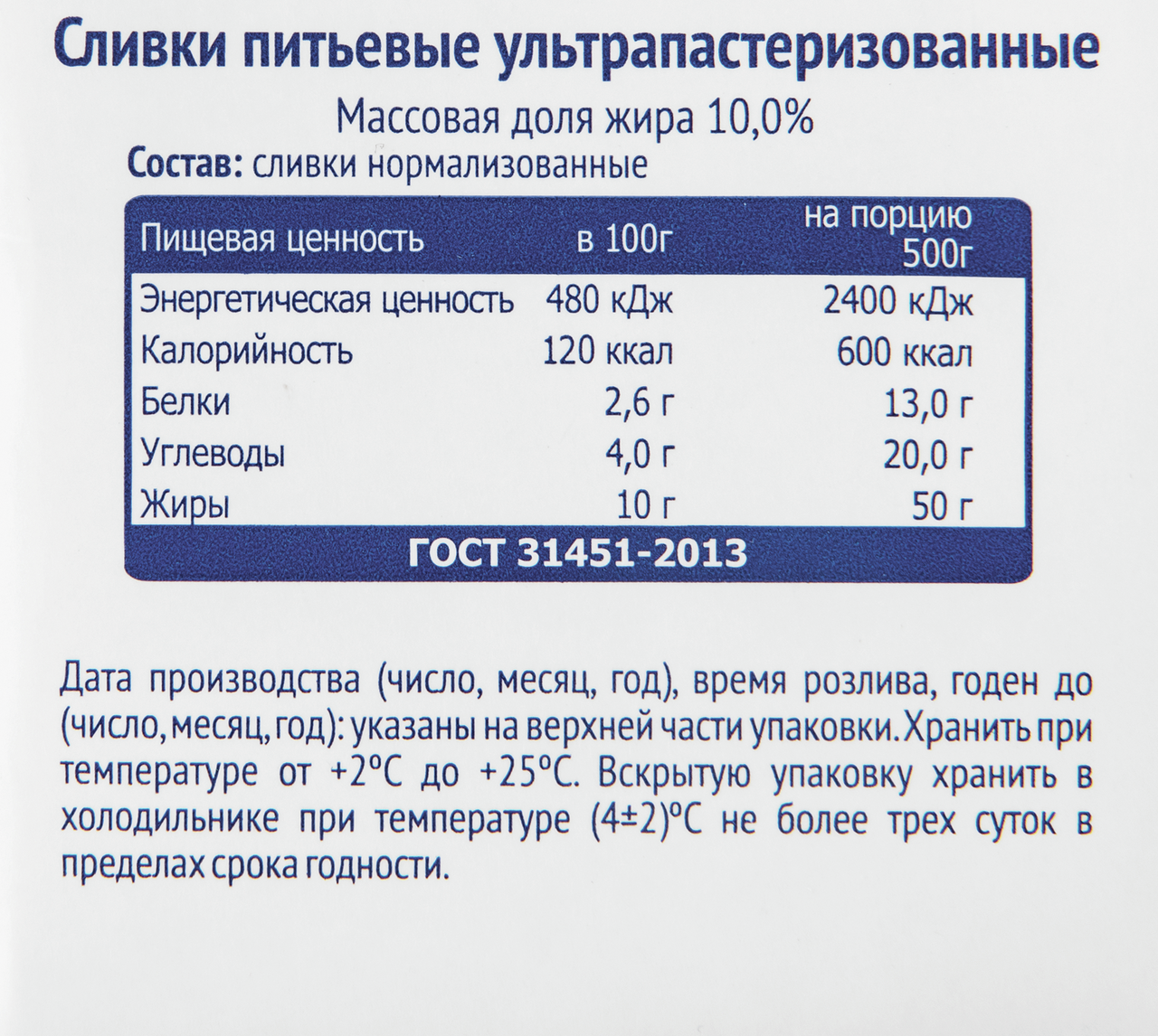 Сливки нормализованные.
