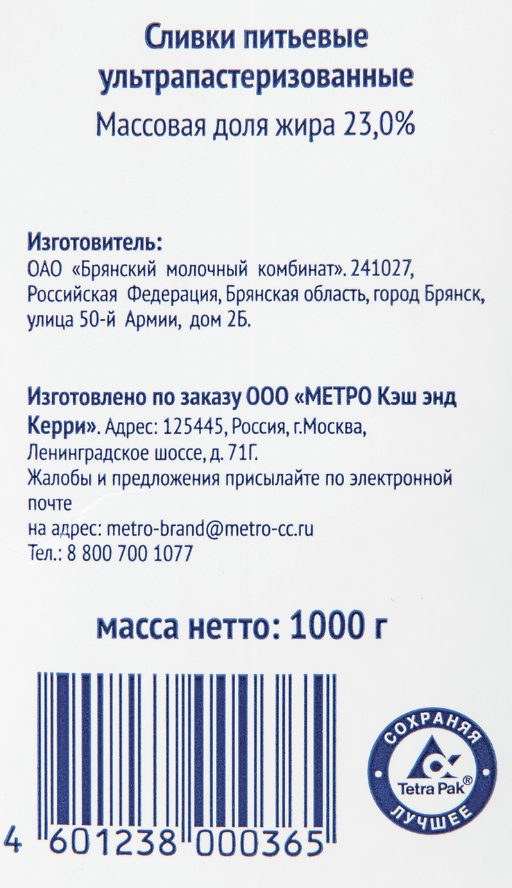 METRO Chef Сливки ультрапастеризованные 23%, 1кг