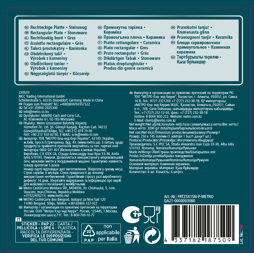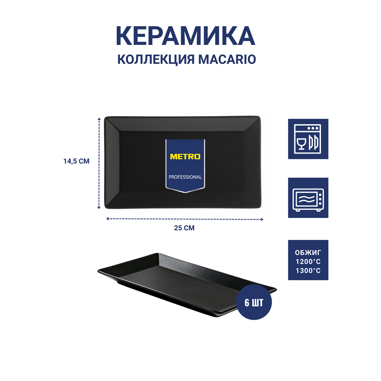 METRO PROFESSIONAL Блюдо Macario прямоугольное черное 25 x 14.5см, 6шт