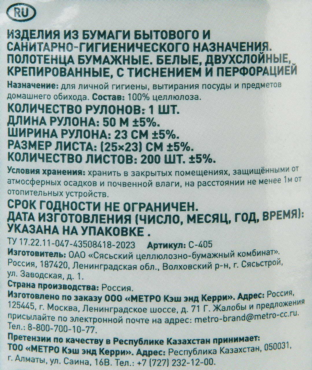 METRO PROFESSIONAL Бумажные полотенца 2 слоя, 50м
