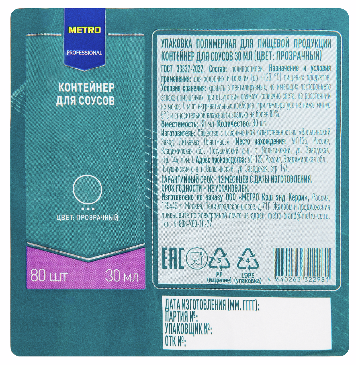 METRO PROFESSIONAL Контейнер для соусов прозрачный 30мл, 80шт
