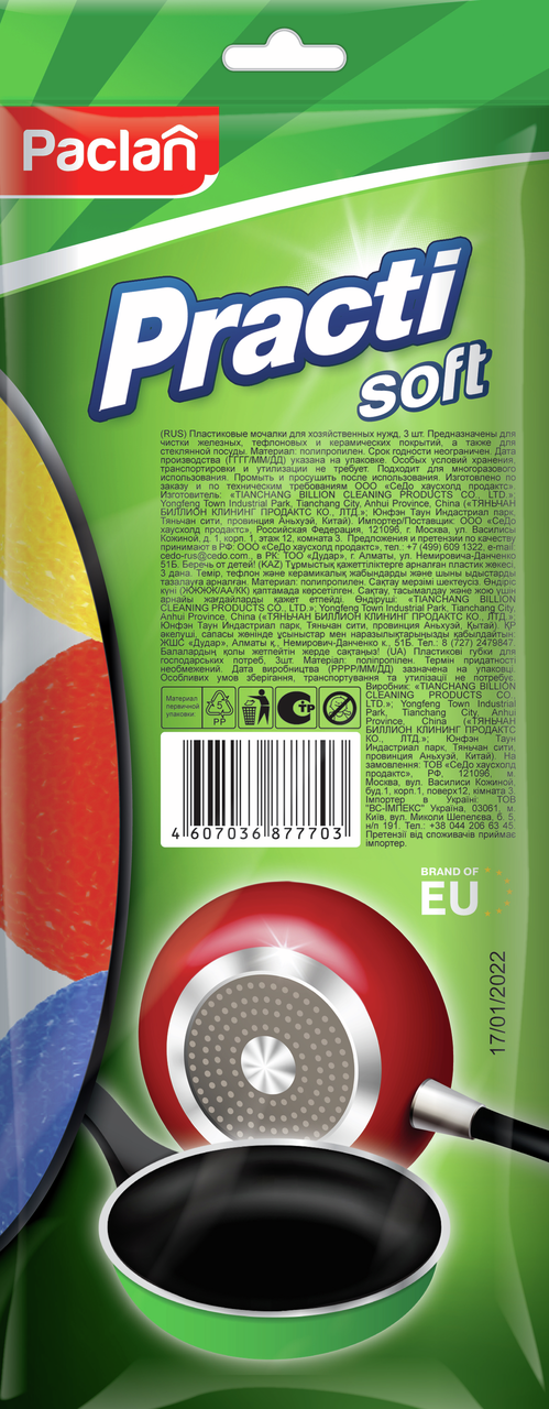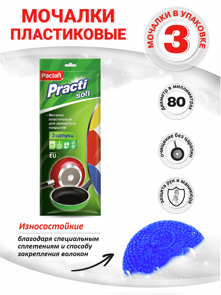 Мочалка Paclan Practi пластиковая малая 8см, 3шт