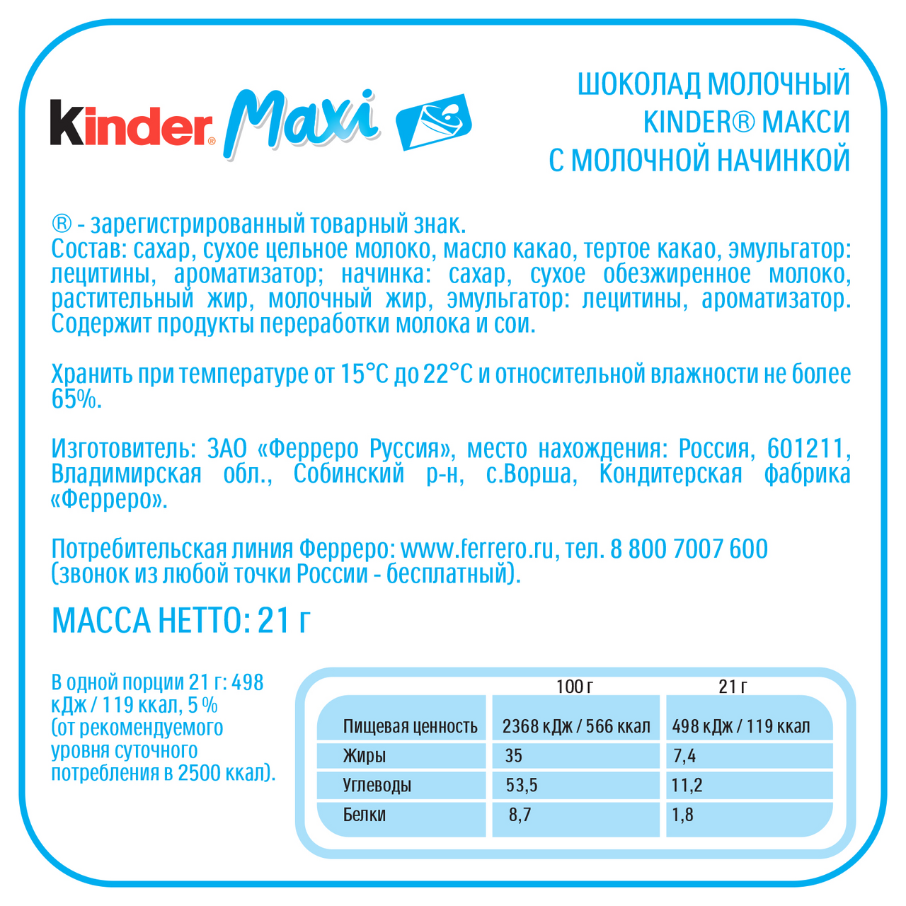 Шоколад Kinder Maxi с молочной начинкой, 21г