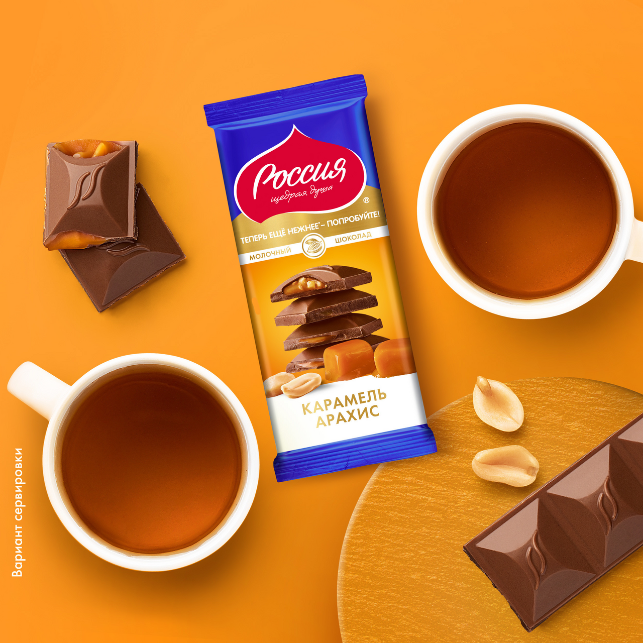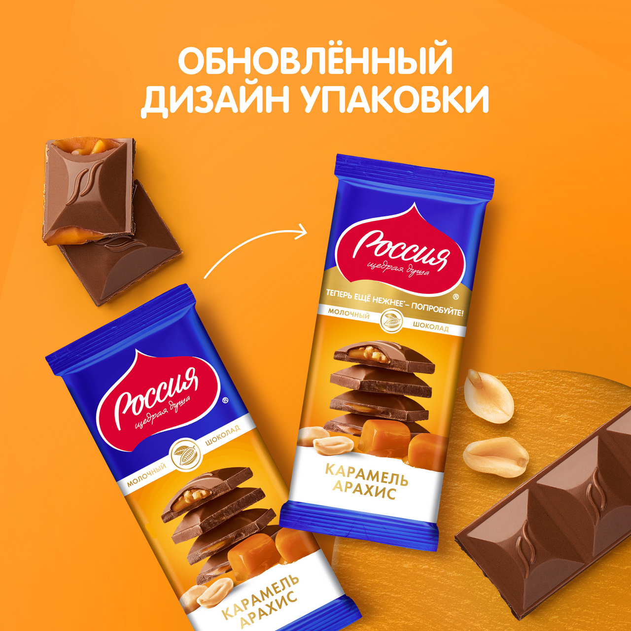 Шоколад Россия Щедрая душа Карамель и арахис молочный, 82г