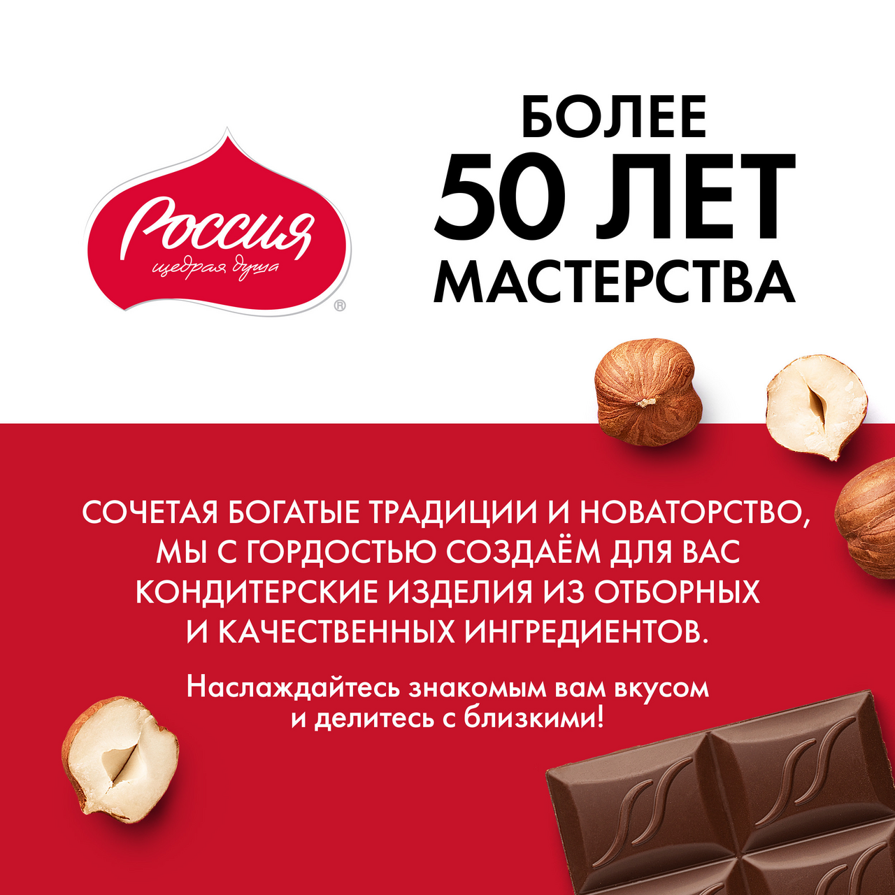 Шоколад молочный Россия Щедрая душа с карамелью и арахисом – шоколад, созданный из отборных ингредиентов. Изысканное сочетание нежного молочного шоколада и густой карамели с добавлением отборного арахиса в одной плитке.