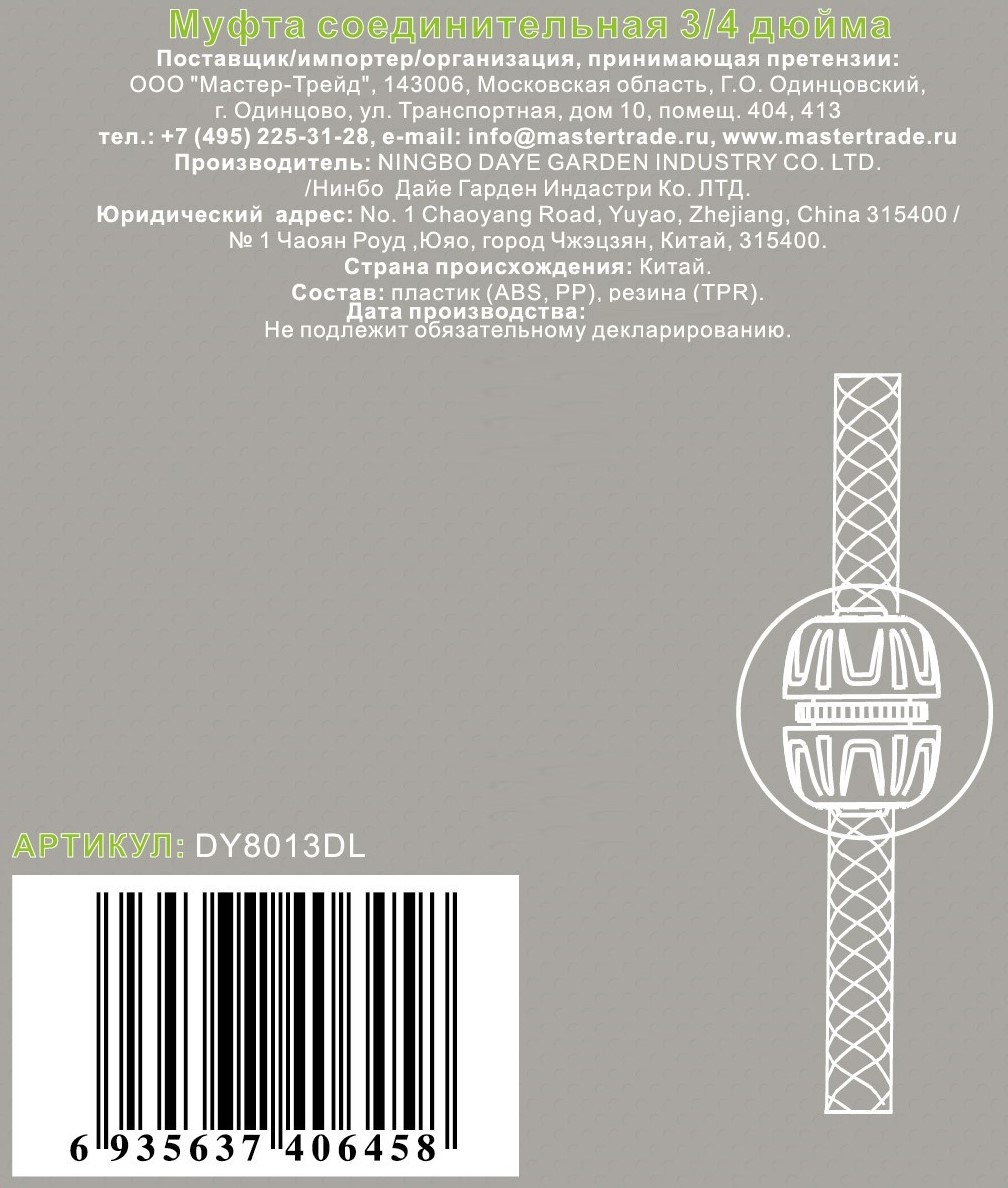 Муфта Daye ремонтная для шланга 3/4 дюйма
