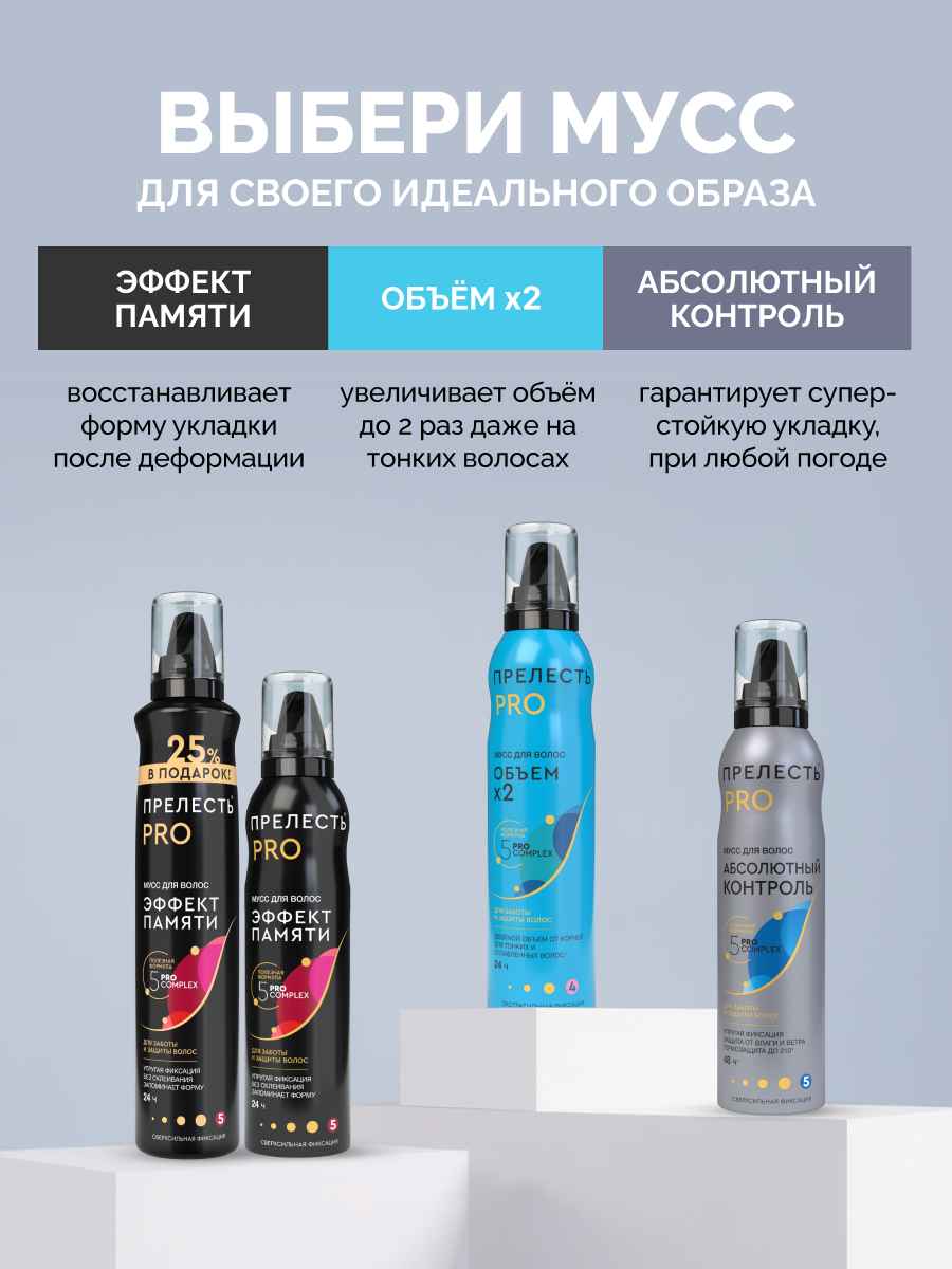 Мусс для укладки волос Прелесть Professional Эффект памяти сверхсильная фиксация, 200мл