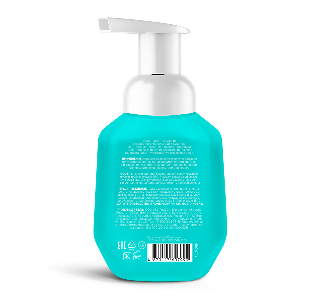 Увлажняющая пенка для очищения лица изготовлена на основе натуральных ингредиентов. Нежная пена на основе алое-вера и д-пантенол очистит от загрязнений, успокоит, восстановит и уменьшит сухость вашей кожи. Умывалка для лица деликатно увлажняет за сухую, чувствительную, увядающею и возрастную кожу. Очищающая пенка избавляет лицо от загрязнений, не травмируя, не растягивая и не пересушивая кожу. Универсальные средства с уникальной рецептурой подходят как для женщин, так и для мужчин. Входящие в состав фруктовые олигосахариды помогают поддерживать здоровый микробом кожи. Здоровый биом – это первая линия защиты от вредных внешних стрессоров. Алоэ-вера гель обладает увлажняющим, антисептическим и противовоспалительным действием. Гиалуроновая кислота снимает воспаление, способствует регенерации клеток эпидермиса. Пантенол ускоряет регенерацию, повышает упругость, предотвращает появление раздражений. Мусс для умывания — это отличная альтернатива таким средствам, как: гель для умывания лица, гидрофильное масло для умывания, пенка для умывания корея, умывалка для лица корея, очищающая пенка, гель для умывания от прыщей.