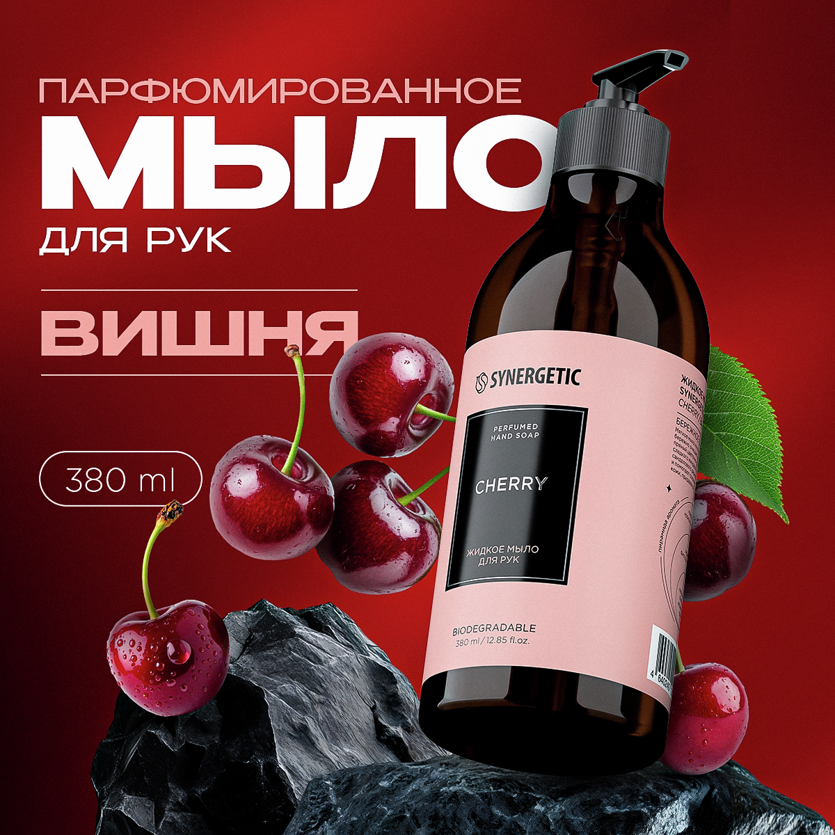 Мыло жидкое Synergetic парфюмированное вишня, 380мл