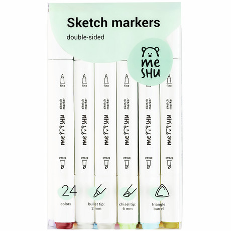 Набор двусторонних маркеров Meshu для скетчинга пастельные цвета 24 цвета