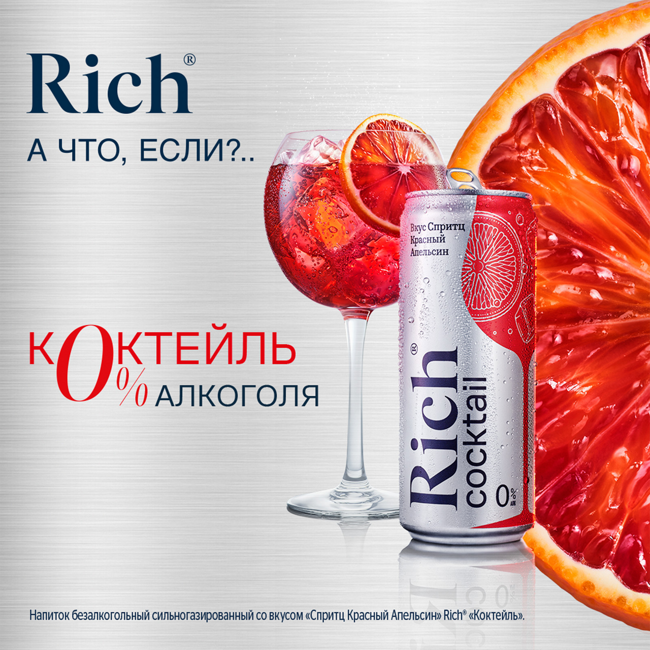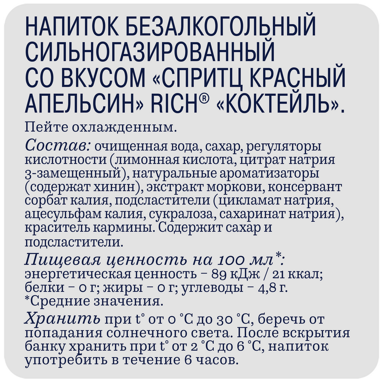 Напиток Rich Спритц красный апельсин газированный, 1л x 12 шт - это сильногазированные напитки высокого качества с особенным вкусом для настоящих ценителей. Попробуйте новинку Rich Спритц Красный Апельсин - это безалкогольный коктейль с пониженной калорийностью и утонченным вкусом для настоящих ценителей. Оцените изысканное сочетание особой горчинки, нот красного апельсина и сбалансированного аромата белого вермута. Отлично подойдет для самостоятельного потребления и в качестве ингредиента для коктейлей.