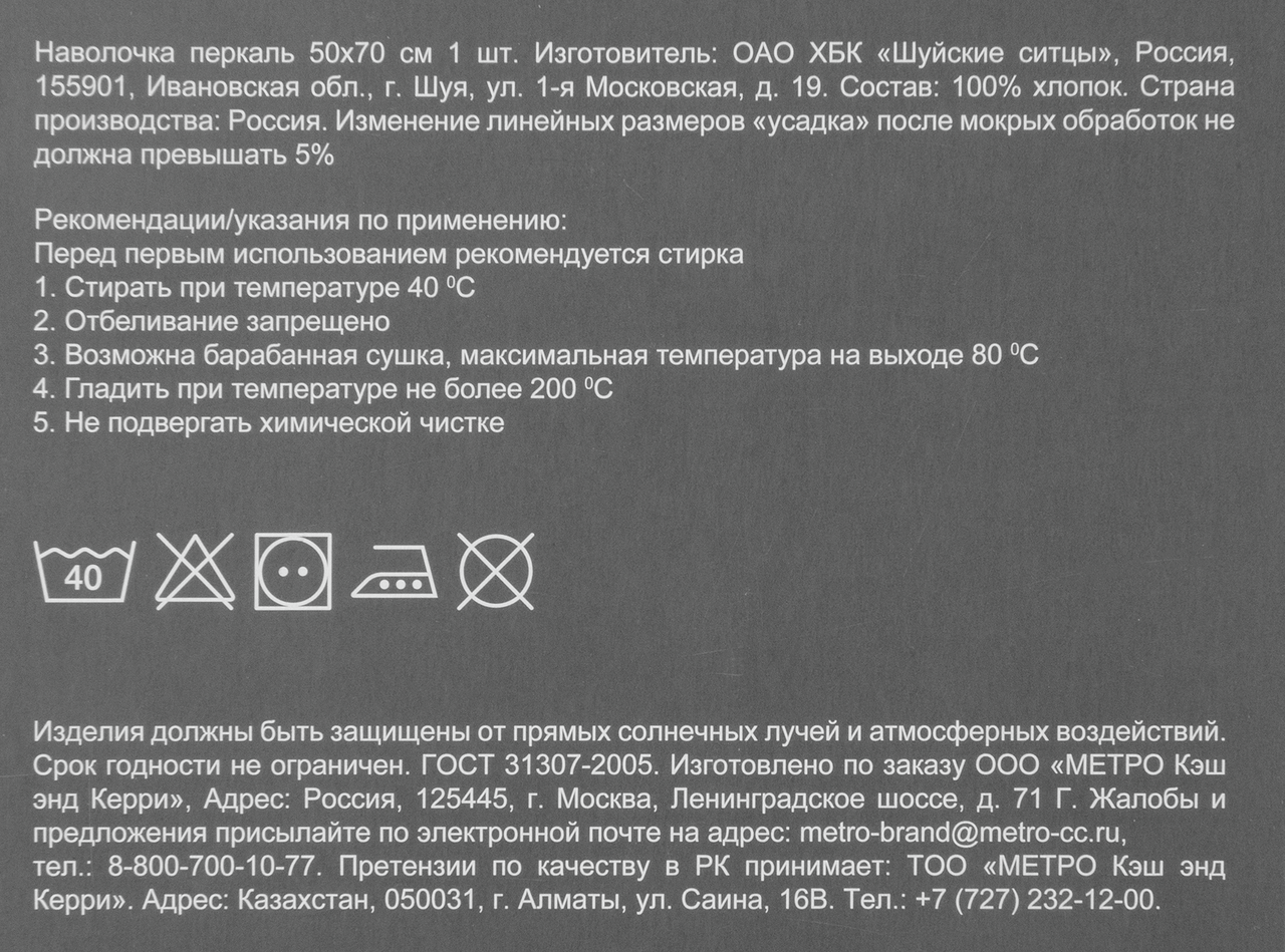 Tarrington House Наволочка графит перкаль, 50x70 см сшита из хлопка высокого качества. Тонкая ткань не скатывается и создает приятные тактильные ощущения, которые обеспечивают комфорт во время сна. Для ухода за перкалью необходимо выбирать температурный режим не выше 40 градусов. Не следует стирать постельное белье из хлопчатобумажных тканей совместно с изделиями из смешанных и синтетических волокон, а также с мохером. Это может стать причиной появления катышек и постельное белье утратит свой опрятный внешний вид. Хлопковый материал хорошо пропускает воздух и подходит даже для очень чувтсвительной кожи. За счет лаконичного цвета такая наволочка будет органично смотреться в любом комплекте постельного белья.
