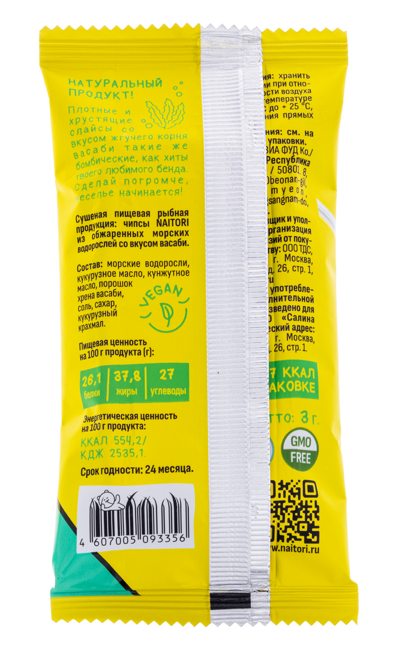 Чипсы нори Naitori со вкусом васаби, 3г