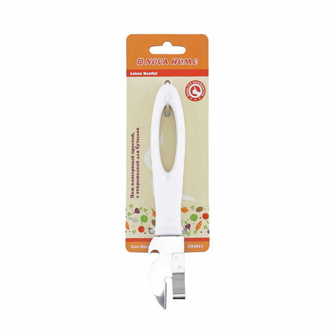 Нож консервный Nova Home — необходимый инструмент на любой кухне. Он поможет открыть консервную банку можно всего за несколько секунд. Он выполнен из нержавеющей стали высокого качества. Нож безопасен и удобен в использовании. Современный дизайн изделия легко впишется в интерьер любой кухни. Удобная ручка предотвращает соскальзывание. Нож выполнен из качественных материалов, поэтому прослужит вам долгие годы. Он пригодится в пое��дках и путешествиях. Предусмотрены петли на ручках для подвешивания.