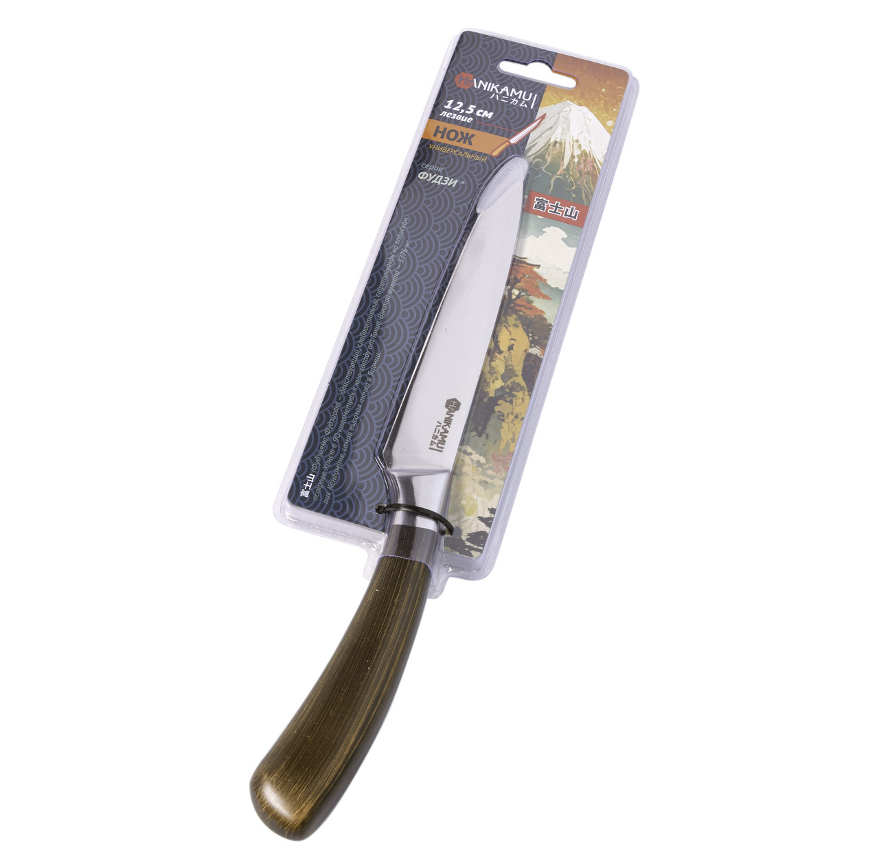 Нож универсальный Фудзи, используется для выполнения операций, для которых нет отдельных инструментов. Подходит для нарезки и очистки всех видов продуктов. Будьте аккуратны при нарезке продуктов с костями (рыба, мясо). После каждого использования тщательно мойте нож с применением неабразивных моющих средств. После мытья рекомендуется протирать нож насухо. Не рекомендуется мыть в посудомоечной машине.