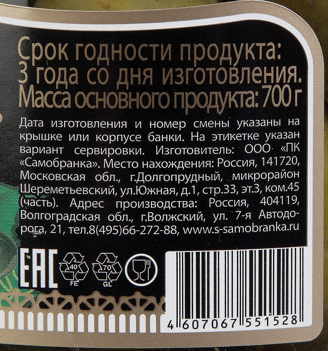 - Тип упаковки Стеклянная банка