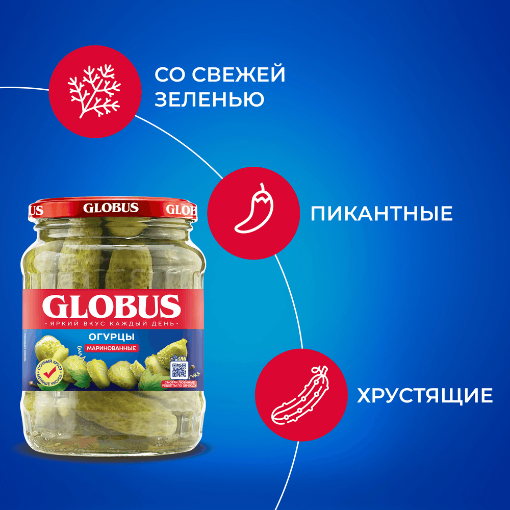Какими должны быть идеальные маринованные огурчики? Хрустящими, ароматными, сочными, в меру пикантными и, конечно, вкусными. Казалось бы, ничего сложного, но добиться такого сочетания удается далеко не всем. Огурчики Globus готовятся по уникальному рецепту, точное соблюдение которого позволяет сделать их безупречными во всех отношениях. Для маринованных огурчиков Globus найдется место и на праздничном, и на повседневном столе. Их секрет - в неповторимом вкусе, достаточно ярком, чтобы они могли стать самостоятельным блюдом, но в то же время позволяющем использовать их вместе с другими продуктами в самых разных салатах и закусках.