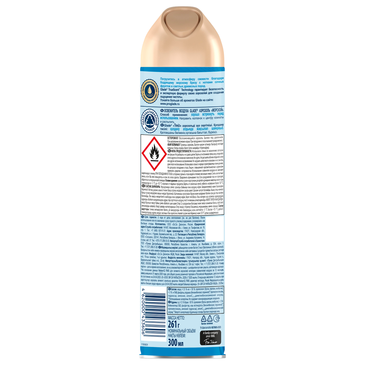 Погрузитесь в атмосферу свежести благодаря бодрящему морскому бризу с нотками светлых древесных пород. Glade TrueScent Technology гарантирует безопасность и экспертную формулу своих аэрозолей для создания ощущения чистоты.