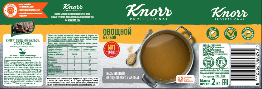 Knorr Овощной бульон Сухая смесь (2кг) придаст Вашим блюдам насыщенный вкус и аромат. Процесс приготовления станет простым с постоянным качеством и результатом. Бульоны Knorr - это приправа, которая сделает Ваши блюда яркими и вкусными.