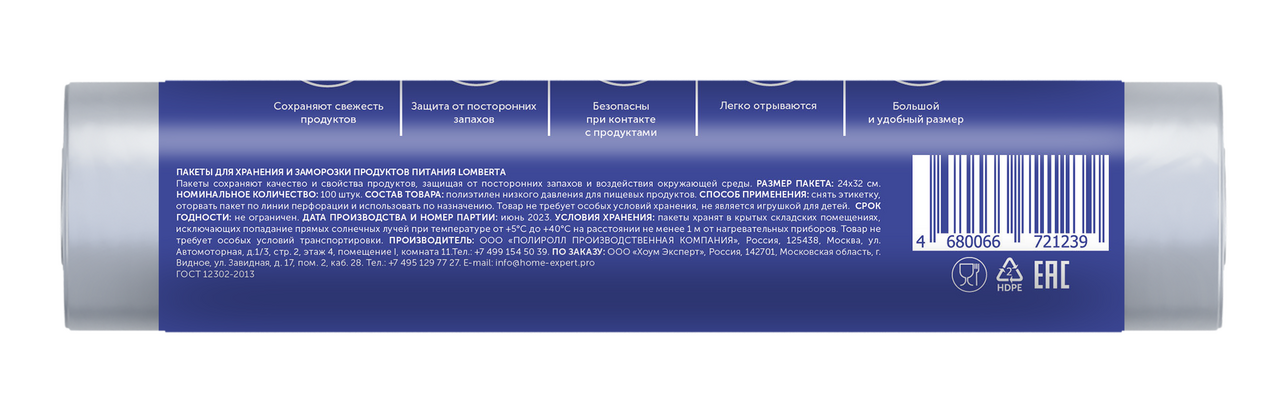 Пакет для пищевых продуктов Lomberta 7мкм 24 х 32см, 100шт