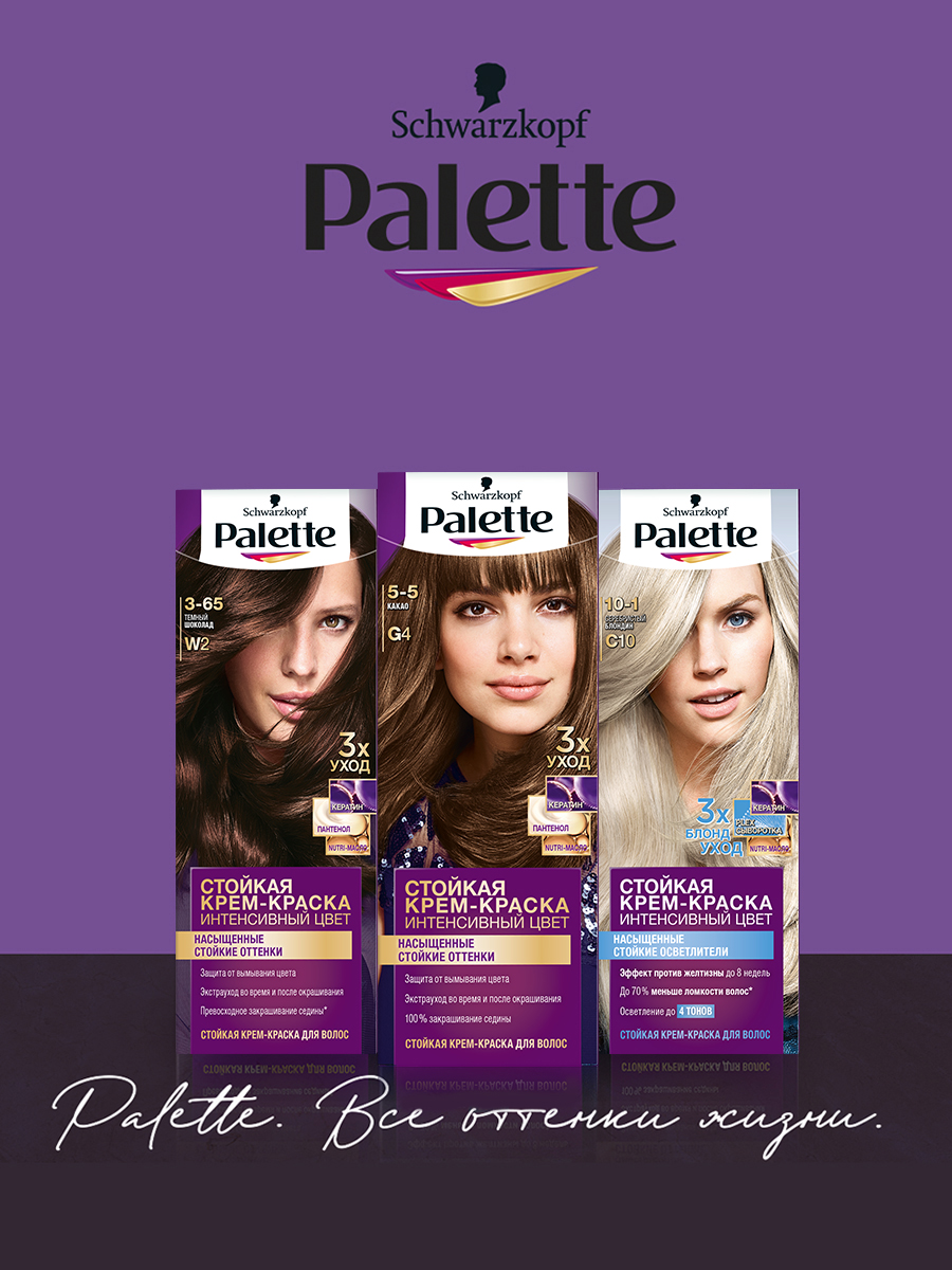 Благодаря тройной системе ухода стойкая крем-краска для волос Палетт обеспечивает бережное окрашивание. С аммиаком. Комплекс с Кератином, Пантенолом и Аргановым маслом проникает глубоко в структуру волоса, восстанавливая, увлажняя и питая его изнутри. Активные вещества оказывают смягчающее и укрепляющее воздействие, делая волосы гладкими и блестящими. Формула с высокоинтенсивными пигментами придает волосам насыщенный цвет и защищает его от вымывания. До 100% без седины. Надолго!