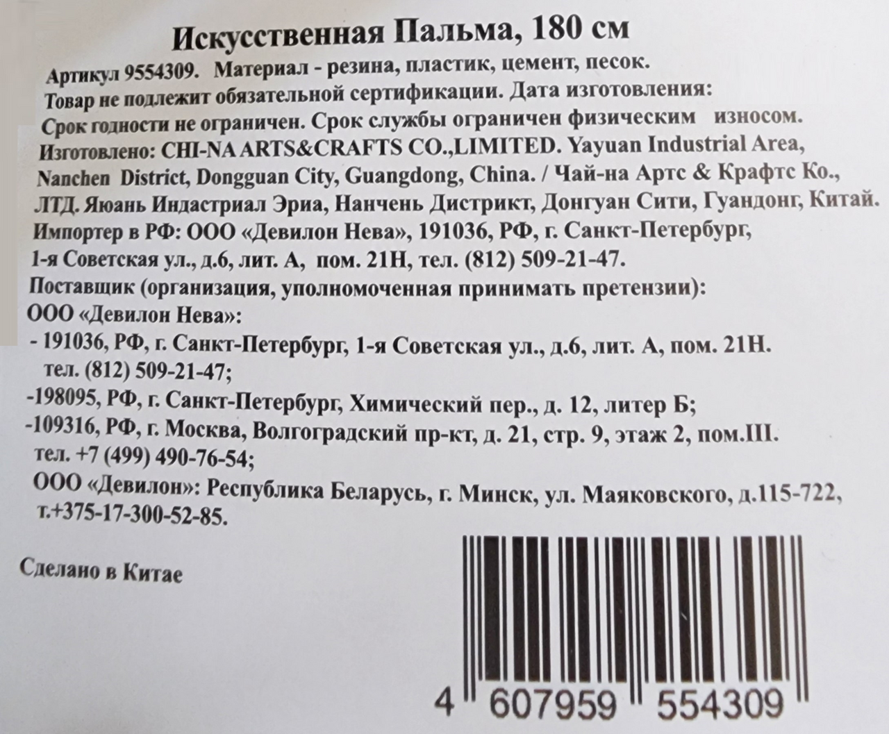 Высокое декоративное растение (180см) выполнено из современных материалов, обеспечивающих максимальную реалистичность. Густая крона с мягкими зелёными листьями идеально впишется в интерьер гостиной, прихожей, офиса или балкона. Не требует ухода, полива или пересадки. Крепкий ствол и гибкие ветви позволяют моделировать форму кроны, создавая уникальные композиции. Декоративная пальма - это стильное решение для зонирования пространства или украшения любого помещения.