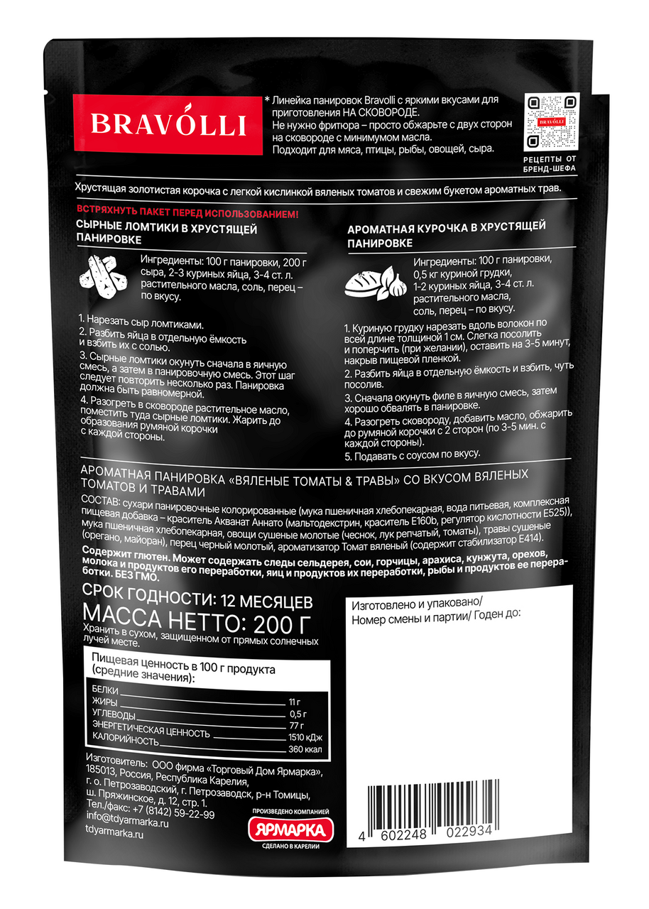 Панировка Bravolli! ароматная вяленые томаты и травы, 200г