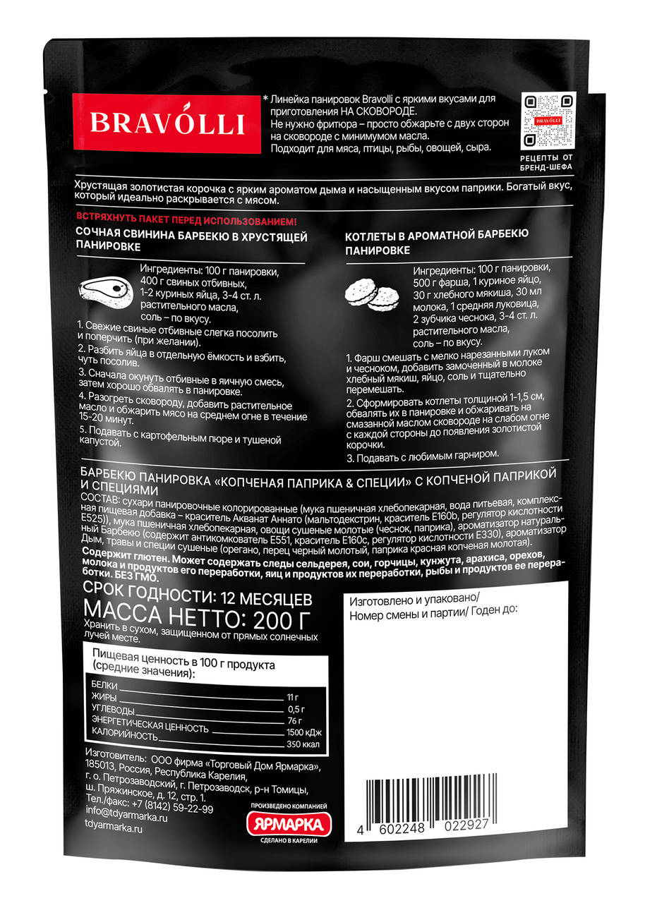 Панировка Bravolli! барбекю копченая паприка и специи, 200г