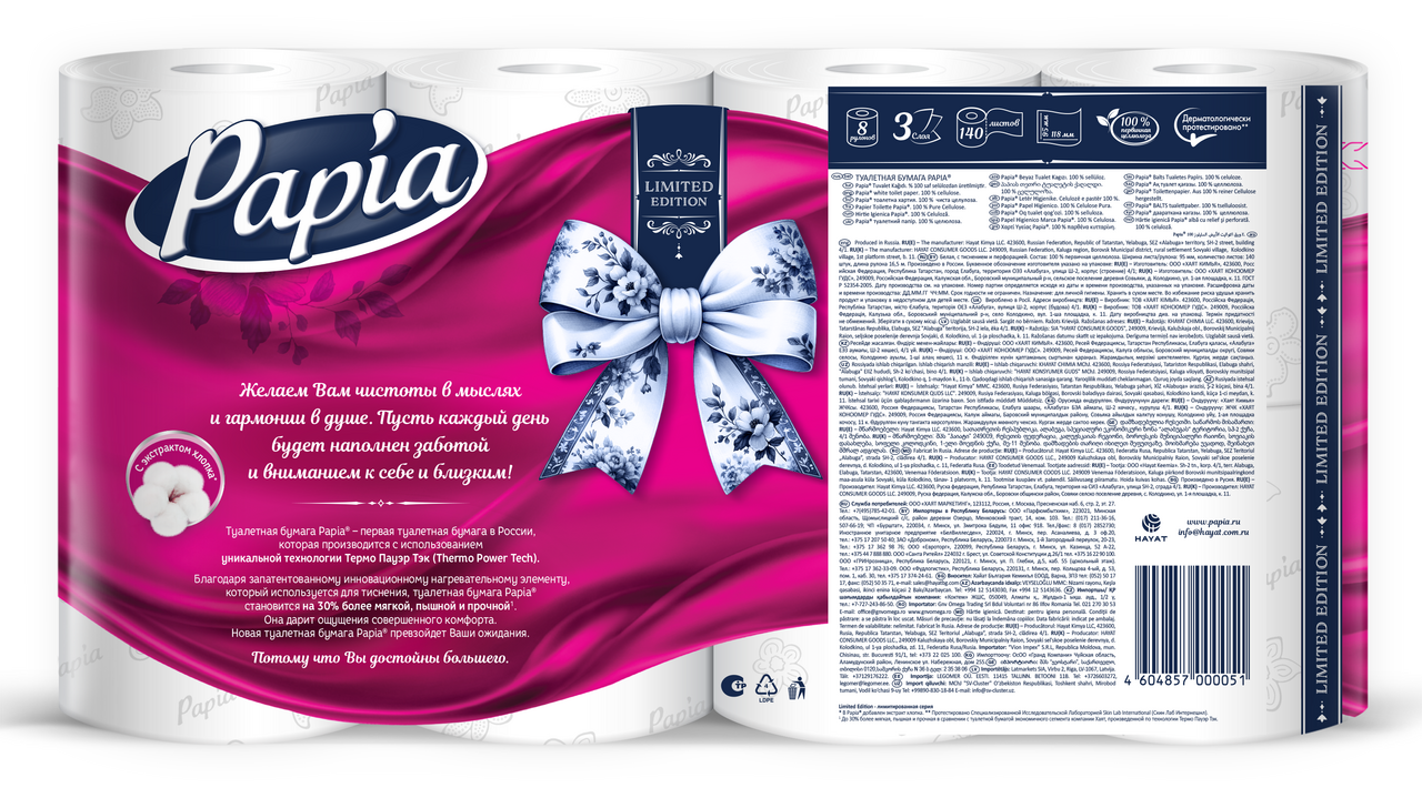 Туалетная бумага Papia 3-слойная, 8 рулонов