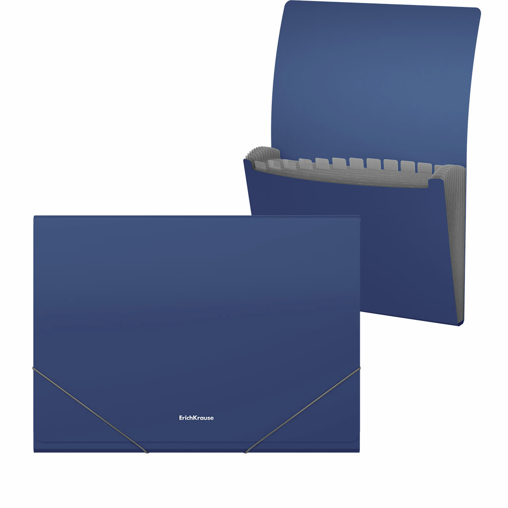 Папка-картотека с 12 отделениями формата А4 из высококачественного пластика с текстурой поверхности "песок", на которой не видно отпечатков пальцев и мелких царапин. Предназначена для хранения, систематизации и транспортировки документов. Цвет папки - синий. Эластичные резинки надежно удерживают папку в закрытом состоянии. Размер - 330х240х25мм, толщина - 0.6мм.