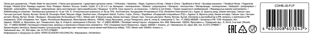 COHB-JS-FLP Папка-уголок с тремя отделениями, А4 в ассортименте. Размер: 22 х 31 х 0,1 см. Colorio.