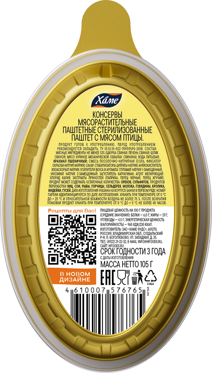 Паштет из мяса птицы Хаме Деликатесный, 105г