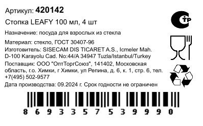 Стильные стопки из коллекции Leafy объемом 100мл изготовлены из качественного натрий-кальций-силикатного стекла, подходят для сервировки праздничного стола и ежедневного использования. В наборе 4 стопки. Можно мыть в посудомоечной машине. Поставляются в брендированной упаковке, что делает их отличным вариантом для подарка.