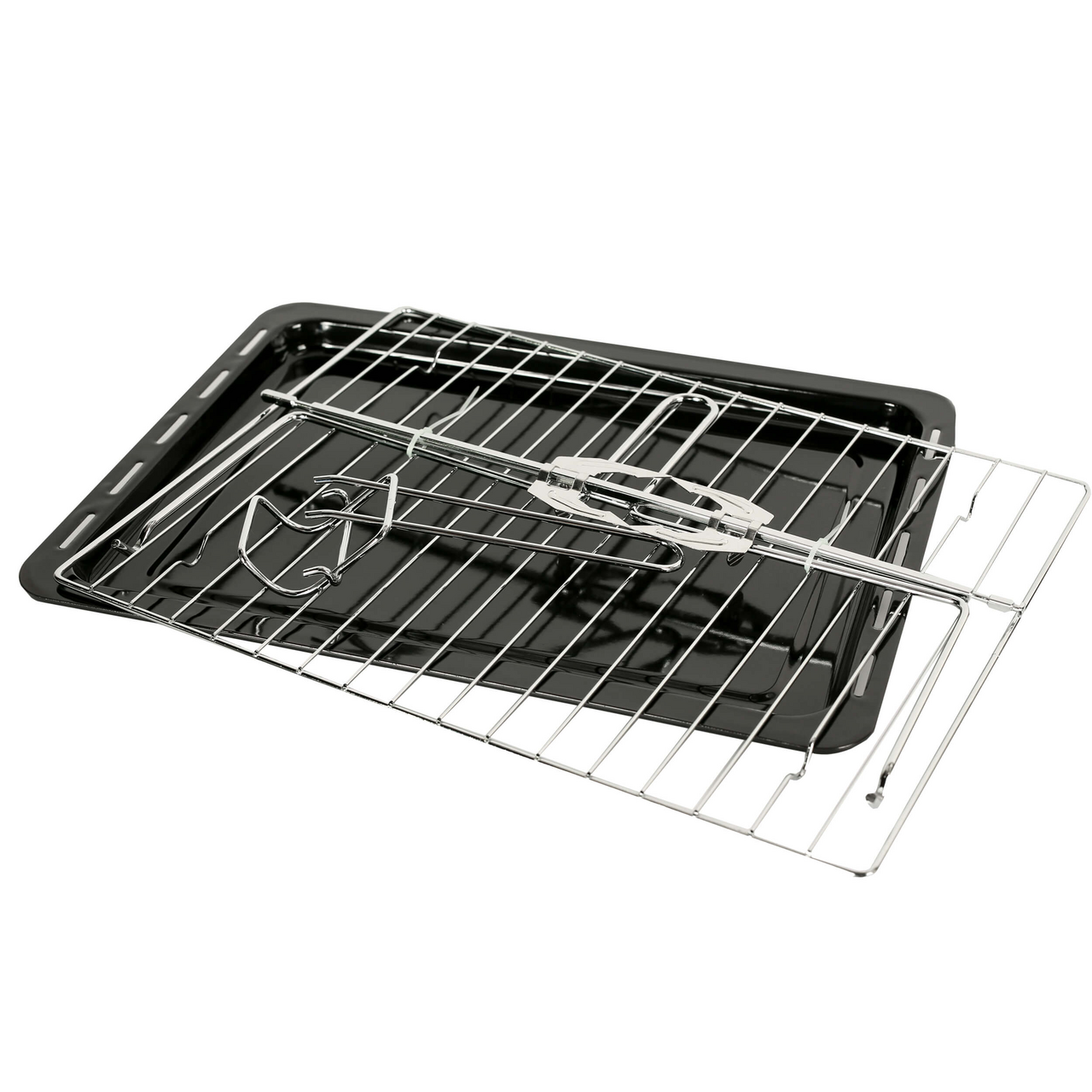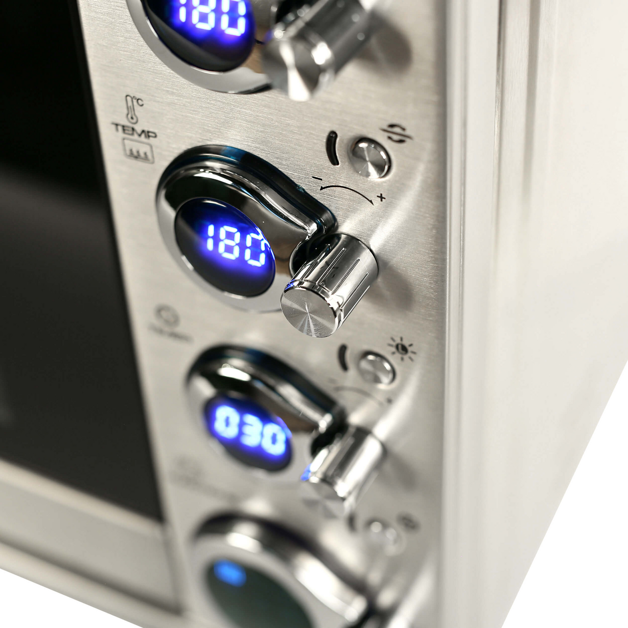 Электрическая конвекционная печь Gemlux GL-OR-2045 LUX с объемом рабочей камеры 45 л может быть с успехом использована как полноценная замена электрической духовке и на кухне городской квартиры, и в загородном доме. Оборудование имеет прочный и гигиеничный корпус из нержавеющей стали и оригинальное электронное управление. Режим работы, температура верхнего и нижнего нагревательных элементов и время приготовления задаются вращением четырех ручек оригинальной асимметричной формы, расположенных на панели управления справа от дверцы. Заданные значения параметров выводятся на четыре ЖК-дисплея, которые производитель разместил на тех же ручках. Выглядит это весьма эффектно и необычно. Вы можете выбрать один из 9 режимов работы: — верхний и нижний нагрев (температура верхнего и нижнего ТЭНов регулируется в пределах 30-230 градусов, по умолчанию – 180 градусов), — верхний нагрев (температура верхнего ТЭНа регулируется в пределах 30-180 градусов, по умолчанию – 150 градусов), — нижний нагрев (температура нижнего ТЭНа регулируется в пределах 30-200 градусов, по умолчанию – 180 градусов), — ферментация (температура нижнего ТЭНа регулируется в пределах 30-45 градусов по умолчанию – 35 градусов), — размораживание (температура нижнего ТЭНа регулируется в пределах 42-45 градусов, по умолчанию – 42 градуса), — программа пользователя (печь запоминает заданные пользователем настройки, верхний и нижний нагрев регулируется в пределах 30-230 градусов), — запекание цыпленка (температура верхнего и нижнего ТЭНов регулируется в пределах 150-230 градусов, по умолчанию температура верхнего ТЭНа – 230 градусов, нижнего – 200 градусов), — приготовление пиццы (температура верхнего и нижнего ТЭНов регулируется в пределах 150-230 градусов, по умолчанию температура верхнего ТЭНа – 210 градусов, нижнего – 200 градусов), — приготовление тостов (температура верхнего и нижнего ТЭНов регулируется в пределах 150-230 градусов, по умолчанию температура верхнего ТЭНа – 200 градусов, нижнего – 230 градусов). Камера печи достаточно вместительна: вы сможете готовить в ней цыпленка-гриль на вертеле целиком, мясо и овощи в форме для запекания, хлеб, пиццу диаметром 30 см и многое другое. Конвекция значительно ускоряет процесс жарки и выпечки и делает его более равномерным, а выдвижной поддон для крошек упрощает очистку. В комплект поставки входят: — эмалированный противень размером 415х310х28 мм с удобным держателем, — решетка из нерж. стали, — вертел с держателем и двумя зажимами.