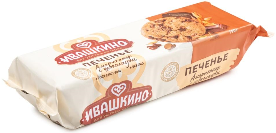 Печенье сдобное Ивашкино Американер с кусочками шоколада, 190г