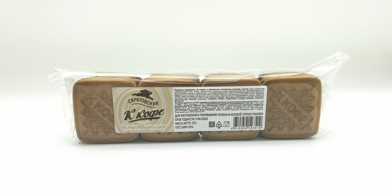 Классическое печенье К кофе станет приятной и неотъемлемой частью вашего чаепития. приготовлено из самых лучших ингредиентов и обладает насыщенным вкусом топленого молока. Рассыпчатая текстура и приятный аромат позволят ощутить все качество сахарного печенья.