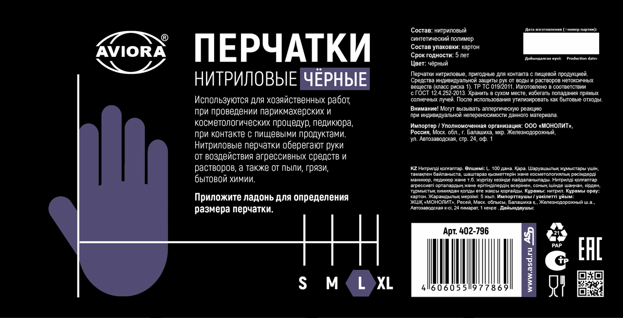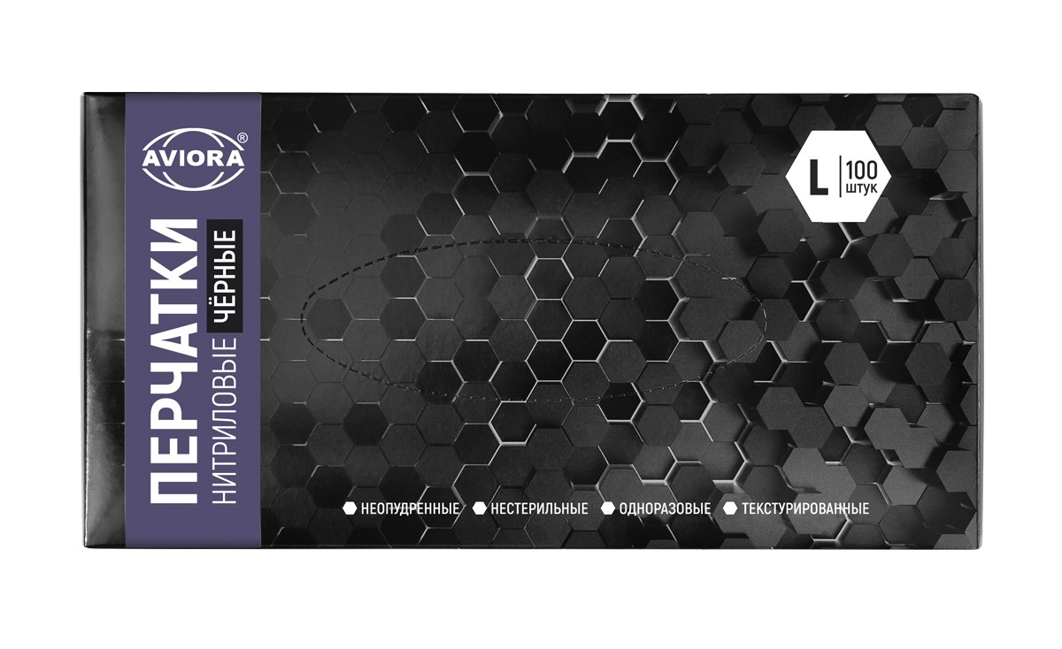 Перчатки Aviora черные нитриловые размер L 50 пар, 100шт