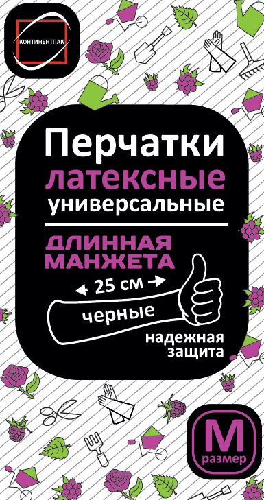 Перчатки Континентпак латексные с удлиненной манжетой черные размер M