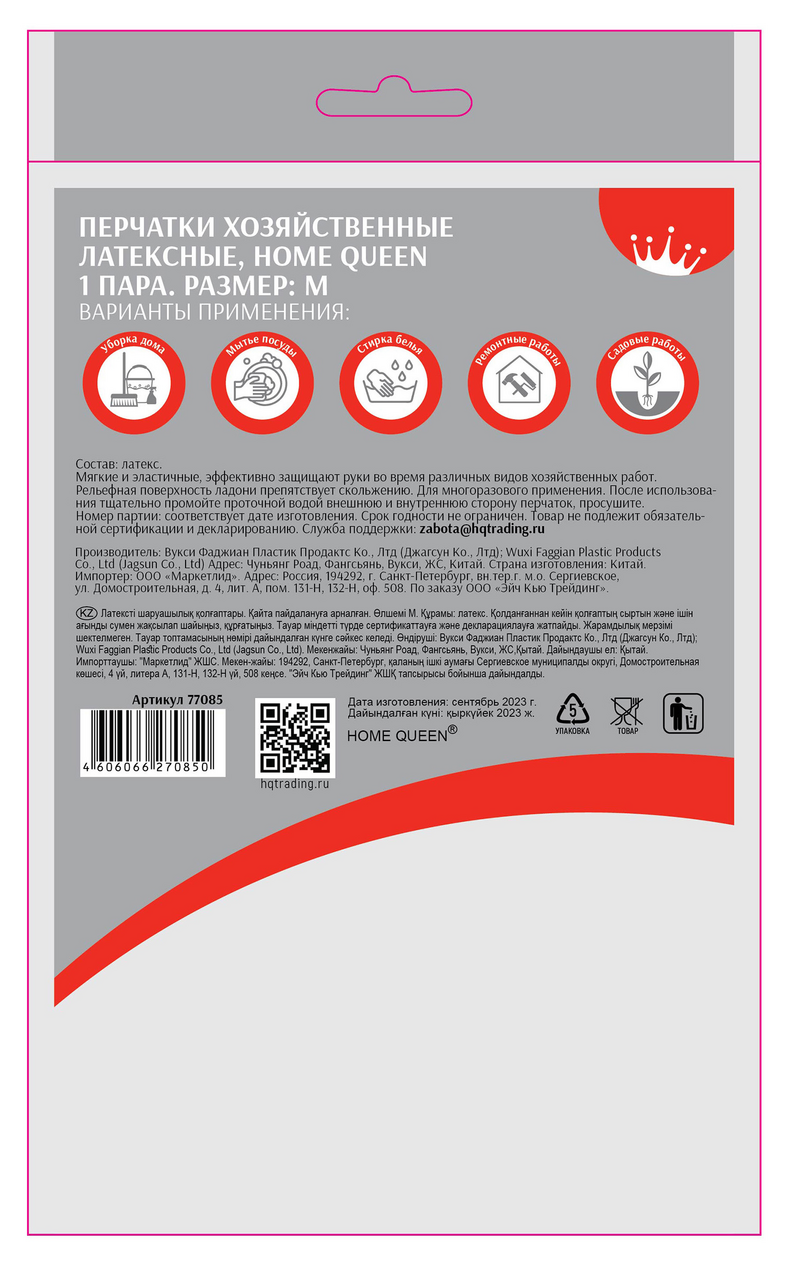 Перчатки хозяйственные Home Queen латекс размер M