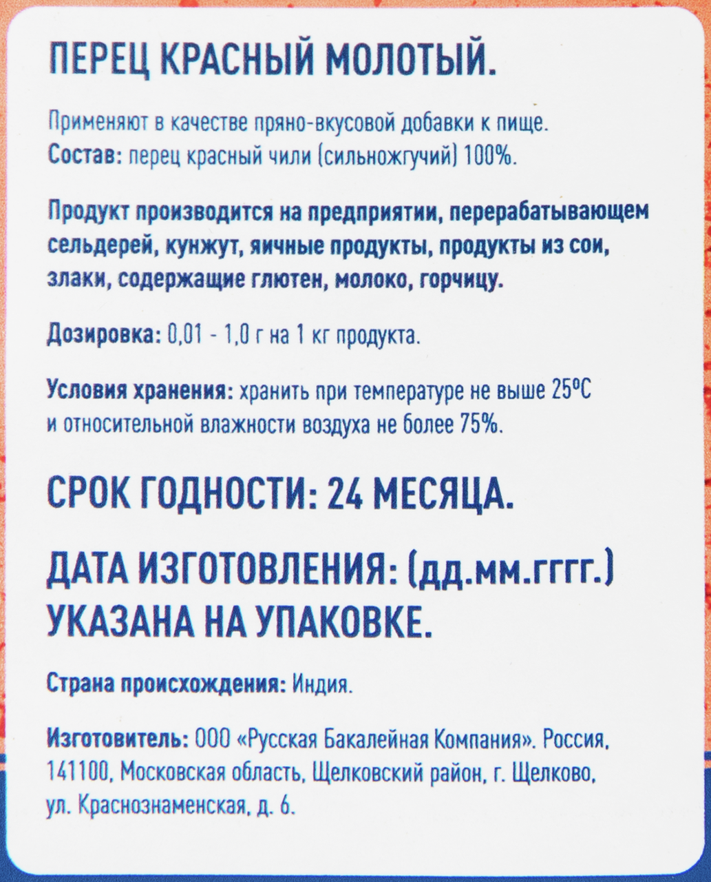 METRO Chef Перец Красный Чили сильножгучий молотый, 500г — известная всем пряность, отличающаяся невероятной остротой. Для него характерен насыщенный жгучий вкус и практически незаметный аромат. Вкусовые особенности красного перца объясняются высоким содержанием в нем алкалоида капсаицина, сконцентрированного преимущественно в семенах. Нужно иметь в виду, что добавлять такую специю в готовое блюдо — распространенная ошибка. Оптимально делать это во время приготовления, желательно за 7-10 минут до готовности, и тогда пряность полностью раскроет свой вкус. Чили принято использовать в производстве консервов из мяса и овощей, а также колбас и сосисок. Красный перец гармонично сочетается с рыбой, свининой и говядиной. Главное правило — не переборщить с количеством специи. Умеренное потребление красного перца благоприятно сказывается на здоровье человека. Чили стимулирует работу желудочно-кишечного тракта, повышает аппетит, улучшает зрение. В красном перце содержится много витаминов: А, С, Е, группы В, PP, К.