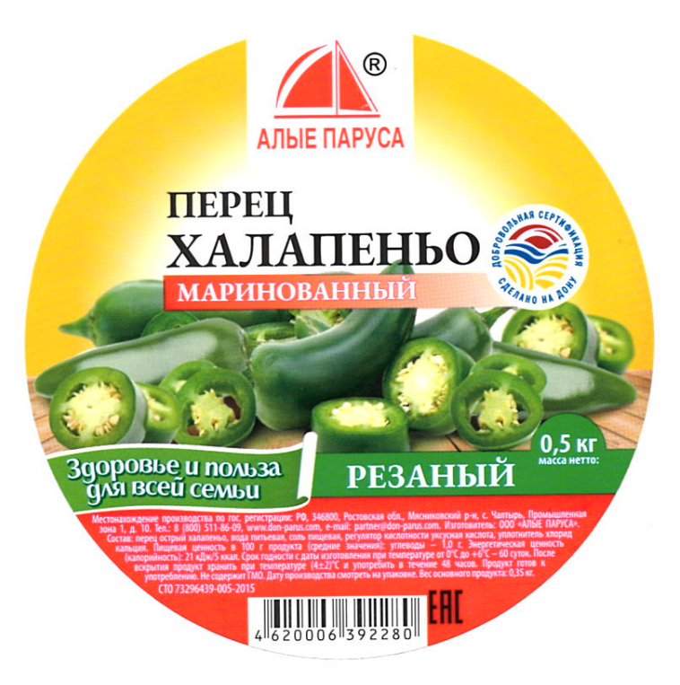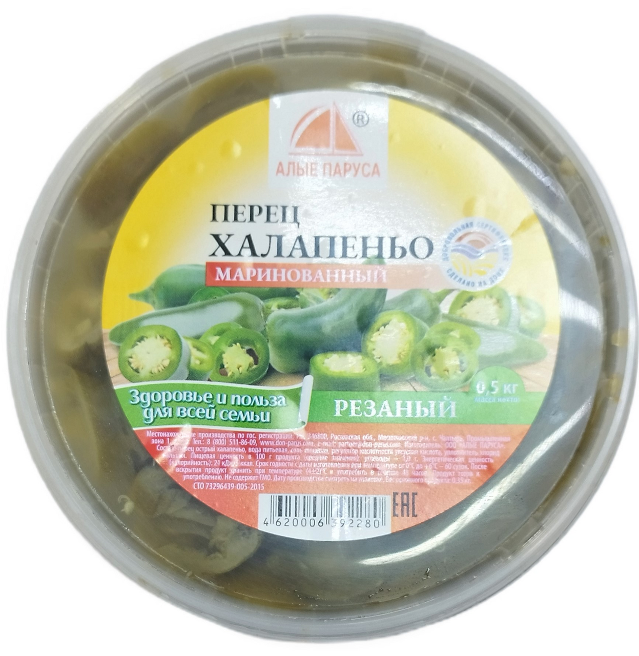 Перец халапеньо Алые паруса маринованный резаный, 500г
