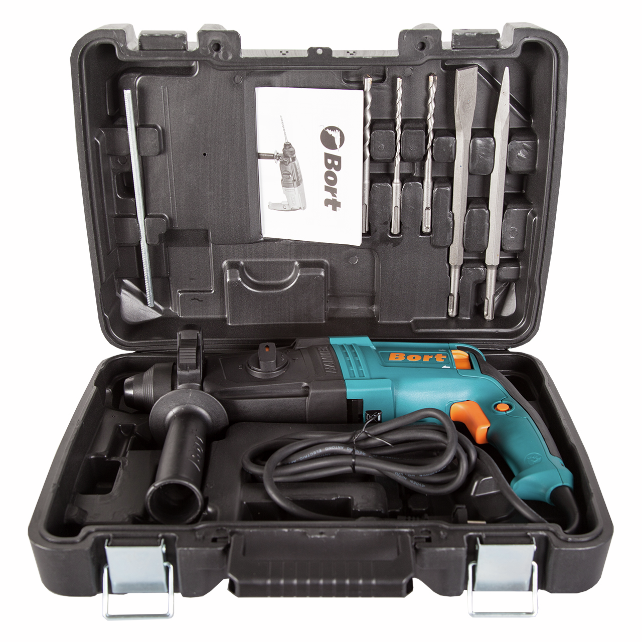 Горизонтальный перфоратор выполнен по 3-х режимной схеме. Несмотря на небольшой вес и размеры, перфоратор может сверлить отверстия в бетоне до 30мм, это высокий показатель для этого класса инструмента. Мощный выносливый двигатель выдает удар энергией 3,5 Дж. Поэтому вы легко справитесь не только с отверстиями, но и можете отбить плитку, штукатурку, проделать небольшие канавки. Система специальных уплотнений отлично защищает внутренние узлы и детали перфоратора от пыли и шлама. Завод дает гарантию 2 года. Инструмент комплектуется бурами и пиками, кейсом.