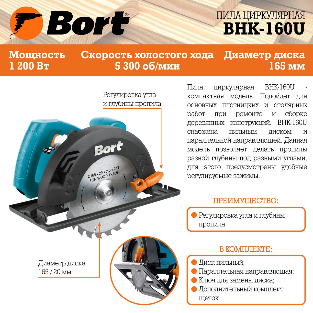Компактная модель циркулярки с максимальной глубиной пропила 55 мм и диаметром диска 165 мм. Подойдет для основных плотницких и столярных работ при ремонте и сборке деревянных конструкций. BHK-160U снабжена эластичной рукояткой. Пильный диск входит в комплект поставки. Данная модель позволяет делать пропилы разной глубины под разными углами, для этого предусмотрены удобные регулируемые зажимы. Подобный электроинструмент применяют так же профессиональные мастера по дереву, плотники, столяры.