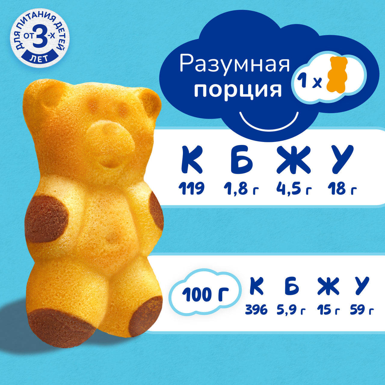 Участвует в конкурсе: Выиграйте кофемашину на сладкое! Совершите покупку товаров-участников на сумму от 1500₽ с 23 октября 2025г. по 14 января 2026г. и получите шанс выиграть кофемашину или другие сладкие призы! Чем больше покупок - тем больше шансов на победу! Подробнее об акции - https://cdn.metro-cc.ru/ru/mndlz_2025.pdf. Это натуральное бисквитное пирожное в форме медвежонка с шоколадной начинкой. Набор бисквитных пирожных с шоколадной начинкой порадует тех, кто любит нежный ванильный бисквит и качественный молочный шоколад. Пирожные в виде медвежат радуют детей и взрослых не только своим интересным видом, но и приятным вкусом. Такой десерт отлично подходит под чашечку ароматного чая или стакан молока.