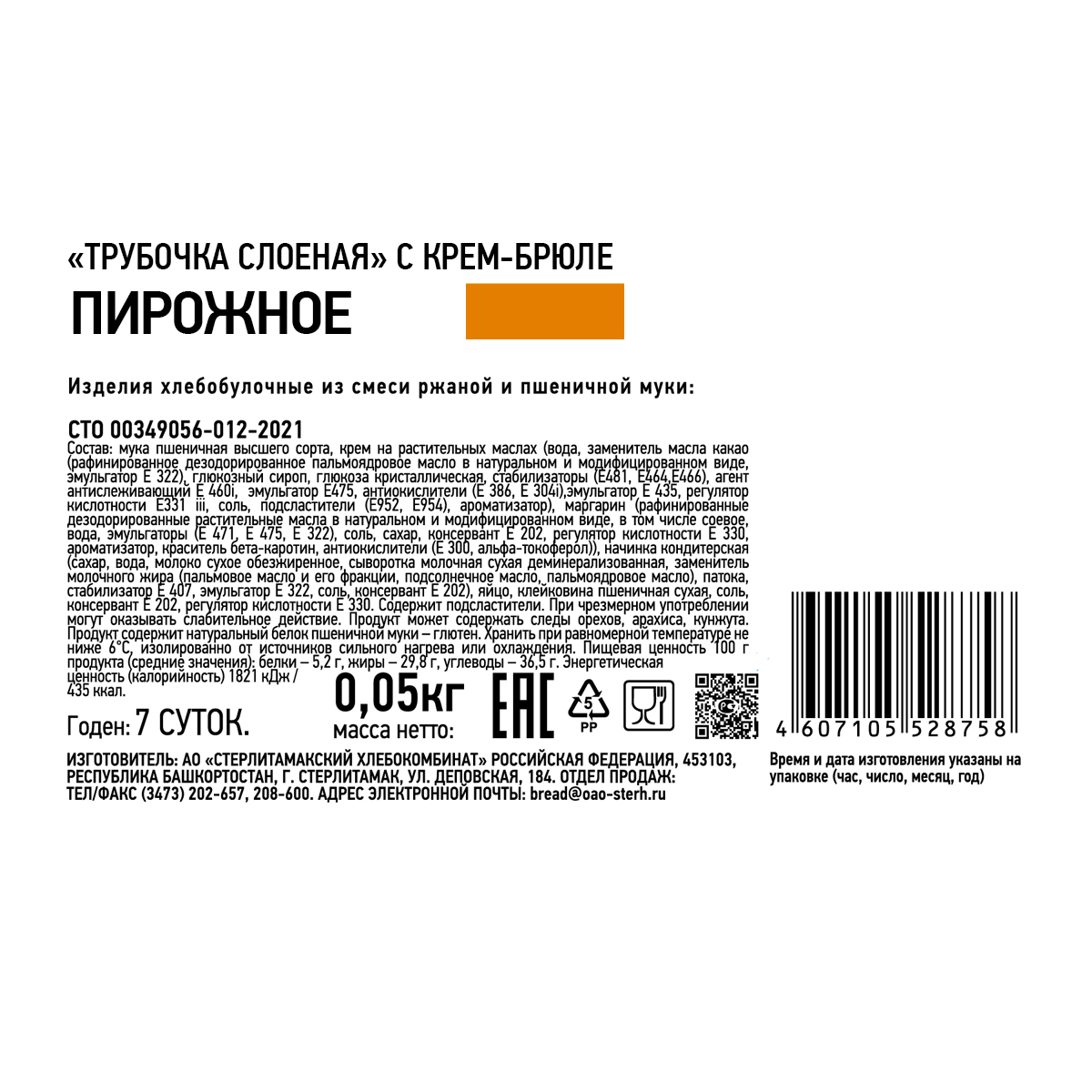 Пирожное Стерх Трубочка слоеная с крем-брюле, 50г