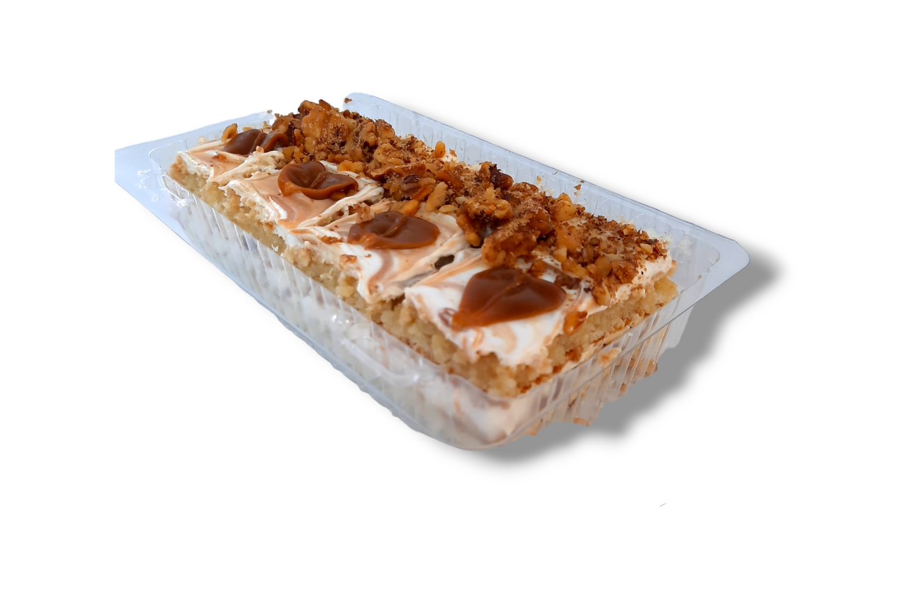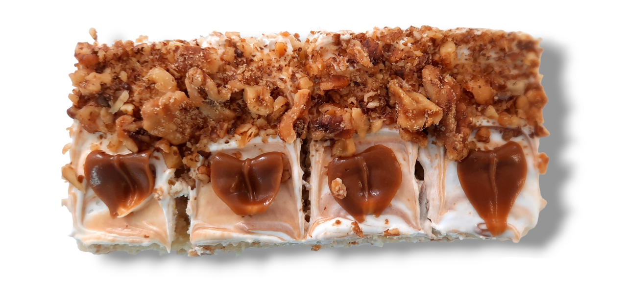Классический бисквит, сметанный крем, вареное сгущенное молоко, грецкий орех.