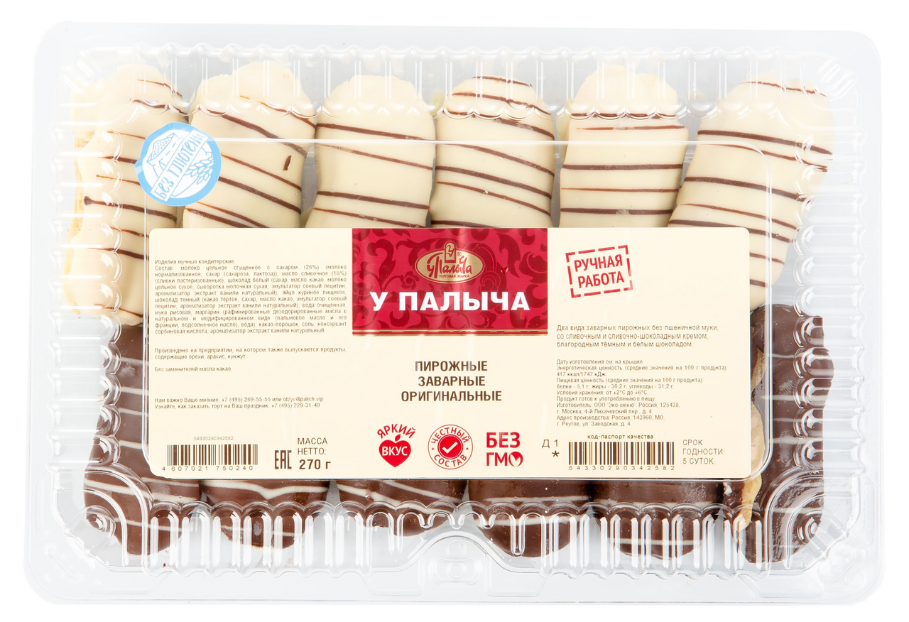 Нежные заварные пирожные со сливочным и шоколадно-сливочным кремом. Пирожные со сливочным кремом покрываются горьким шоколадом, а с шоколадно-сливочным кремом – белым шоколадом. Это ассорти из двух видов пирожных, очень похожих на знаменитые французские эклеры. Они приготовлены из заварного теста и наполнены кремовой начинкой. Шесть пирожных заполнены сливочно-шоколадным кремом и покрыты сверху глазурью из белого шоколада. Другие шесть заполнены ванильно-сливочным кремом и покрыты глазурью из темного шоколада.